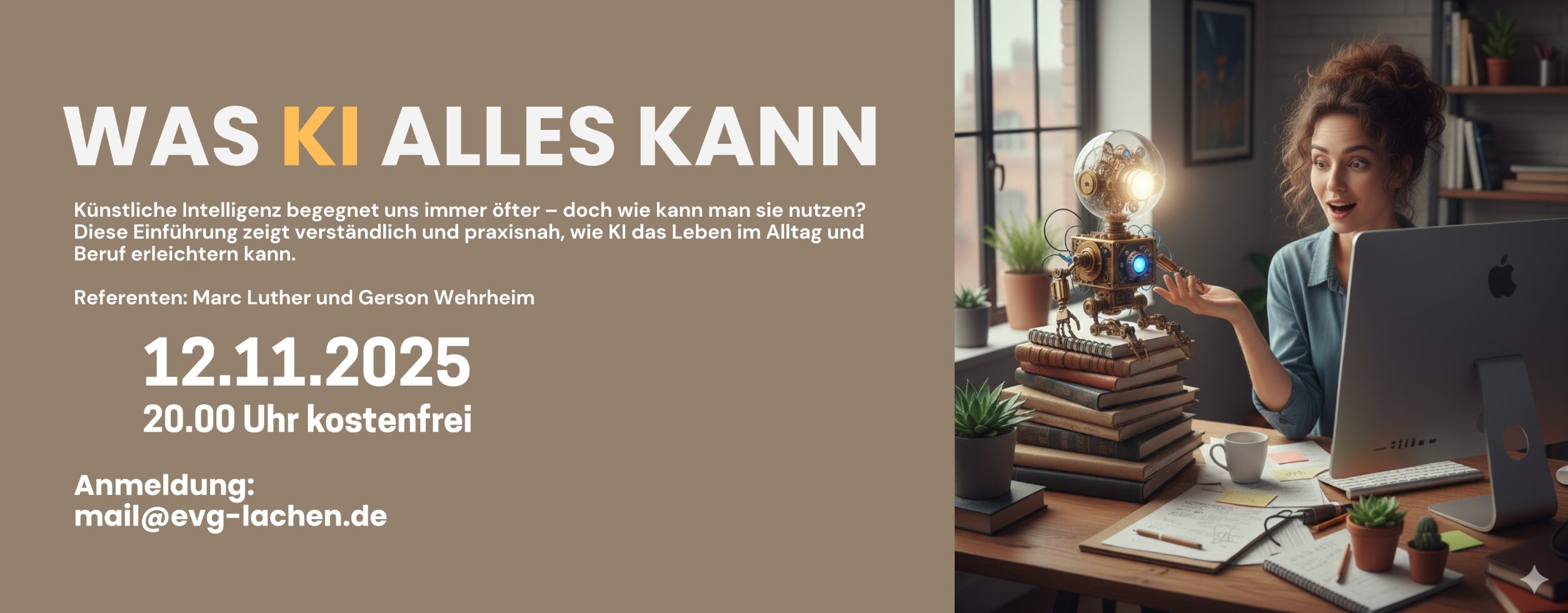 Zielgruppe: Alle, die neugierig sind, wie KI den Alltag erleichtern kann – egal ob privat, im Beruf oder in der Gemeinde